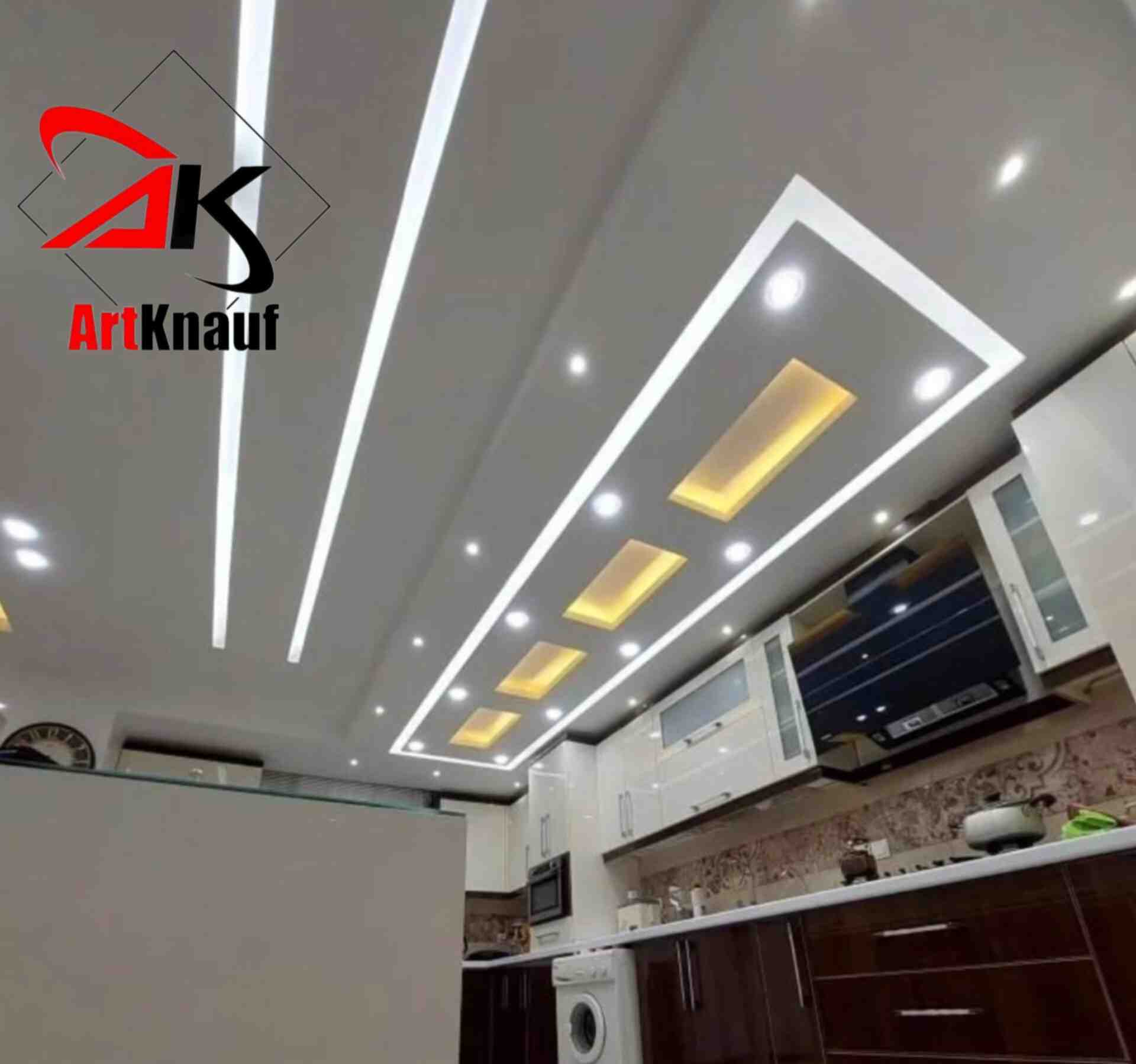 با سبک سقف کاذب کناف می توانید آینده را به آشپزخانه خود بیاورید. اگر آشپزخانه شما دارای روکش فلزی، اشکال پیچیده و ظاهری براق باشد، می تواند مدرن به نظر برسد.